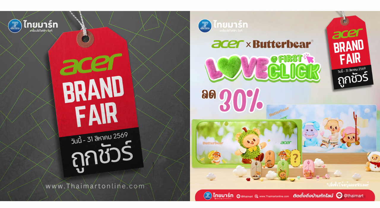 Acer x ButterBear Love @ First Click ชีเนยมาแล้ววว กับคอลเลกชันใหม่! ส่งไอเทมชวนใจละลาย เติมความคิวท์ละมุนให้ทั่วโต๊ะทำงาน เมาส์ สุดคิวท์ 5 ดีไซน์ มาให้มัมหมี พ่อหมี ได้จุ่ม ได้ลุ้นกันให้ใจเต้นแรงงงง ทั้ง I LOVE CHOCOLATE, DURIAN, CHA THAI, NOM YEN และลาย SECRET