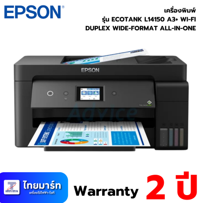 เครื่องพิมพ์แท็งค์แท้เอปสัน EcoTank L14150 รองรับขนาดกระดาษหลากหลาย สามารถสแกนและทำสำเนาแบบแนวระนาบได้สูงถึงขนาด Legal (F14) และ Folio (F4) และยังสามารถพิมพ์เอกสารได้สูงถึงขนาด A3+ เป็นเครื่องพิมพ์มัลติฟังก์ชั่นขนาดกะทัดรัดที่มีประสิทธิภาพที่สุด พร้อมช่วยคุณประหยัดค่าใช้จ่ายด้วยฟังก์ชั่นการพิมพ์สองหน้าอัตโนมัติ เพิ่มประสิทธิภาพการทำงานด้วยเทคโนโลยี Heat-Free ที่ไม่ใช้ความร้อนในการพิมพ์ ให้งานพิมพ์ความเร็วสูง ประหยัดพลังงาน ตอบโจทย์การพิมพ์ทางธุรกิจได้อย่างสมบูรณ์แบบ