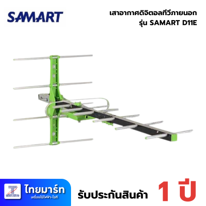 เสาอากาศดิจิตอลทีวีภายนอก SAMART สามารถรองรับสัญญาณระบบ UHF ตอบสนองความถี่ 470 - 862 MHz และรับสัญญาณได้ไกลถึง 80 กม. จากสถานีกระจาย สายสัญญาณมีความยาว 10 เมตร น้ำหนักเบา ขนาดกระทัดรัด วัสดุคงทน สามารถใช้งานได้ยาวนาน