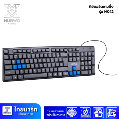 คีย์บอร์ด NUBWO รุ่น NK42 มีสายเชื่อมต่อ เพียงเสียบเข้าพอร์ตก็พร้อมใช้งาน รูปแบบแป้นพิมพ์ 2ภาษา รองรับการใช้งานไทยและอังกฤษ มีไซน์ทันสมัยและสัมผัสในการกดที่นุ่มเงียบ ไม่มีเสียงรบกวนทั้งการทำงาน