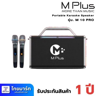 MPlus M3 PRO ลำโพงบลูทูธแบบพกพา แอมป์ในตัว กำลังขับ 30 วัตต์ สามารถเล่นไฟล์เสียงผ่าน USB และ บลูทูธ 5.0 ได้ พร้อมไมโครโฟนไร้สาย คลื่นความถี่ UHF 748.3 มีแบตเตอรี่ในตัว