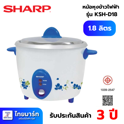 SHARP หม้อหุงข้าวไฟฟ้า 1.8 ลิตร รุ่น KSH-D18 *คละสี คละลาย*