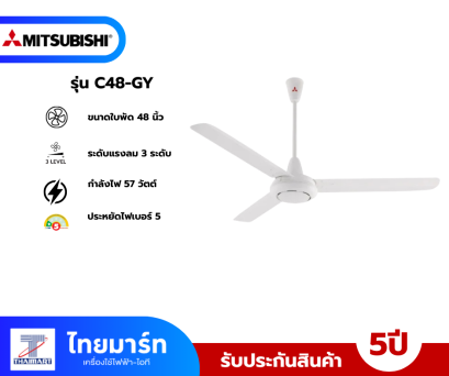 พัดลมติดเพดานขนาด 48 นิ้ว MITSUBISHI ใบพัดเหล็กเคลือบพิเศษ ทนทาน ให้กระแสลมสม่ำเสมอทั่วทั้งห้อง สะดวกในการใช้งานด้วยสวิตซ์การทำงานแบบโรตารี่ มีระบบเทอร์มอลฟิวส์ ตัดการทำงานอัตโนมัติ เมื่อมอเตอร์ร้อนเกิน และระบบเคอร์เร็นท์ฟิวส์ ตัดการทำงานอัตโนมัติเมื่อเกิดกระแสไฟฟ้าลัดวงจร สินค้ารับประกันมอเตอร์ 5 ปี อะไหล่ภายในเครื่อง