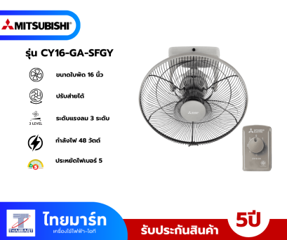 พัดลมติดผนัง MITSUBISHI W18-RA CY-GY สีเทา เปลี่ยนบรรยากาศให้เย็นสบายด้วยพัดลมติดผนัง MITSUBISHI ดีไซน์สวยงาม สามารถเข้ากับทุกห้องภายในบ้านได้อย่างลงตัว สามารถปรับส่ายซ้าย-ขวา และปรับแรงลมได้ด้วยรีโมทคอนโทรล เพิ่มความสะดวกในการใช้งาน เพิ่มความปลอดภัยด้วยระบบตัดไฟอัตโนมัติเทอร์มอลฟิวส์ สินค้าได้รับมาตรฐานประหยัดไฟเบอร์ 5 จากการไฟฟ้าฝ่ายผลิตแห่งประเทศไทย