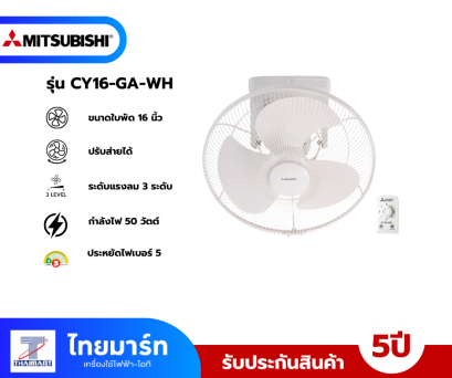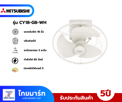 MITSUSHIBA ELECTRIC พัดลมติดผนัง18 นิ้ว รุ่น W18-GA แบบเชือกดึง ดีไซน์สวย ติดตั้งง่าย ลมแรงไม่มีตก ควบคุมการทำงานด้วยเชือก สามารถปรับส่ายซ้าย-ขวา และปรับแรงลมได้ตามความต้องการ เพิ่มความปลอดภัยด้วยระบบตัดไฟอัตโนมัติเทอร์มอลฟิวส์ สินค้าได้รับมาตรฐานประหยัดไฟเบอร์ 5 จากการไฟฟ้าฝ่ายผลิตแห่งประเทศไทย