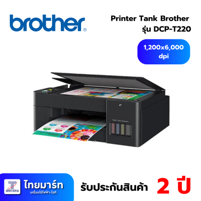 เครื่องปริ้น Brother Ink Tank DCP-T220 พิมพ์สีดำได้สูงสุด 7500 พร้อมแทงค์ในตัวสามารถเติมหมึกได้เอง รองรับงานพิมพ์ได้หลากหลาย พร้อมช่องใส่กระดาษด้วยมือทีละแผ่นด้านหลัง รองรับการพิมพ์ไร้ขอบ