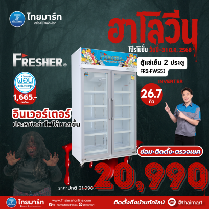 FRESHER ตู้แช่เครื่องดื่ม2ประตู รุ่น FR-2DFS5 ขนาด 27.6Q / 755 ลิตร Digital Control ทำอุณหภูมิที่ 2 – 8 องศา ระบบ No frost ป้องกันการจับตัวของน้ำแข็ง พร้อมฉลากประหยัดไฟเบอร์ 5 5ดาว