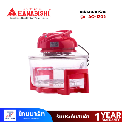 HANABISHI หม้ออบลมร้อน รุ่น AO-1202 ความจุ 12 ลิตร กำลังไฟ 1,300 วัตต์ มีระบบตัดไฟเมื่อยกหูขึ้น ให้การทำอาหารของคุณง่ายขึ้นกว่าเดิมด้วย HANABISHI หม้ออบลมร้อน รุ่น AO-1202 เพราะฟังก์ชั่นการใช้งานที่ครบครันไม่ว่าจะเป็นการอบ นึ่ง ปิ้ง ย่าง หรืออุ่นอาหาร เปลี่ยนการเข้าครัวที่ยุ่งยากมาเป็นการใช้งานด้วยอุปกรณ์เพียงชิ้นเดียวก็เอาอยู่