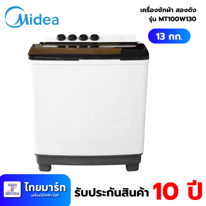 เครื่องซักผ้า 2 ถัง MIDEA MT100W130 13 กก. สีขาว เสื้อผ้าสะอาดเหมือนใหม่ในทุกครั้งที่สวมใส่ ด้วยเครื่องซักผ้า 2 ถัง แบรนด์ MIDEA ที่ให้พลังทำความสะอาดล้ำลึก พร้อมเพิ่มประสิทธิภาพในการขจัดคราบฝังแน่นต่าง ๆ โดยไม่ทำลายเนื้อผ้าด้วยการสร้างกระแสน้ำวนหลายทิศทาง นอกจากนี้ฝาปิดยังมีดีไซน์ Airfresh ที่เป็นเอกลักษณ์เฉพาะ ช่วยดึงอากาศจากภายนอกเข้าไปช่วยระบายความชื้นออกจากใยผ้า ทำให้ผ้าแห้งไวขึ้น ปราศจากกลิ่นอับ พร้อมให้คุณสวมใส่เสื้อผ้าทุกชิ้นได้อย่างมั่นใจในทุก ๆ วัน