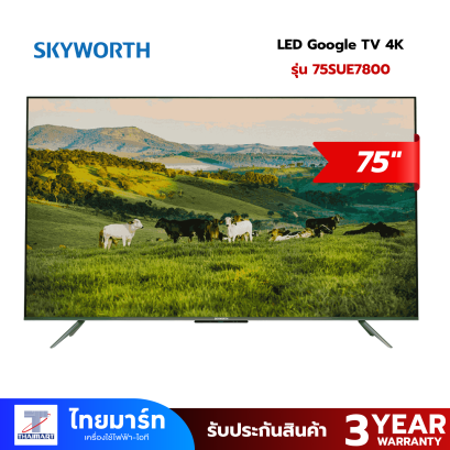 SKYWORTH LED Google TV 4K รุ่น 75SUE7600 สมาร์ททีวี ขนาด 75 นิ้ว ความละเอียดหน้าจอ 3840 x 2160 พิกเซล ระบบปฏิบัติการ Google TV ดีไซน์หน้าจอแบบไร้ขอบ รองรับฟังก์ชั่นการสั่งงานด้วยเสียง Google Assistant รองรับเทคโนโลยี HDR10 และ HLG พาคุณไปสัมผัสกับระบบเสียงคุณภาพ ระบบเสียง Dolby Audio, DTS Studio Sound