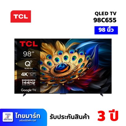 TCL QLED Pro Google TV 4K รุ่น 65C655 สมาร์ททีวีขนาด 65 นิ้ว Quantum Dot Pro แสดงเฉดสีได้กว้างถึง 95% ตามมาตรฐาน DCI-P3 ระดับความสว่าง 450 nits AiPQ PRO PROCESSOR การประมวลผลขั้นกว่าของหน้าจอแสดงผล AI ที่รับรู้และฉลาดแบบมนุษย์ Multiple Eye Care เทคโนโลยีการดูแลสายตา การลดแสงสีฟ้า การปรับแสงธรรมชาติ การป้องกันการกระพริบ ONKYO's 2.1 CH Hi-Fi ที่มาพร้อมกับเสียงสเตอริโอที่น่าหลงใหลและเบสที่เป็นธรรมชาติ ระบบปฏิบัติการ Google TV สามารถเข้าถึงแหล่งความบันเทิงได้อย่างสะดวก
