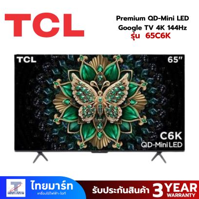 TCL Premium QD-Mini LED Google TV 4K 144Hz รุ่น 55C6K สมาร์ททีวีขนาด 55 นิ้ว QLEDพร้อมMini LED ให้คอนทราสต์และขอบเขตสีเทียบเท่า OLED แต่ให้ความสว่างสูงสุดและอายุการใช้งานที่ยาวนานกว่า เทคโนโลยี Halo รอบทิศทาง ช่วยแก้ปัญหาแสงรั่ว ได้ภาพที่คมชัดและรายละเอียดสูงยิ่งขึ้น ชิปเปล่งแสง Super Energy Highlighter ให้ภาพสดใส รายละเอียดสูง และประหยัดพลังงาน เทคโนโลยีแผง HVA อัตราคอนทราสต์สูงพิเศษถึง 7000:1 สูงกว่าหน้าจอ IPS ทั่วไปถึง 5 เท่า AiPQ Pro Processor ชิปประมวลผลภาพที่มีคุณสมบัติ AI หลายอย่าง ให้ได้การรับชมที่ดีที่สุด