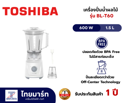 เครื่องปั่นอเนกประสงค์รุ่น BL-T60 ปั่นละเอียดกว่าด้วยเทคโนโลยี Off Center ที่มีใบมีดขยับออกจากแกนกลาง 5 มม.และใบมีดสแตนเลส 4 แฉก พร้อมพลังมอเตอร์ 600 วัตต์ปั่นแรงกว่า ปลอดภัยด้วย BPA Free ไม่มีสารก่อมะเร็ง