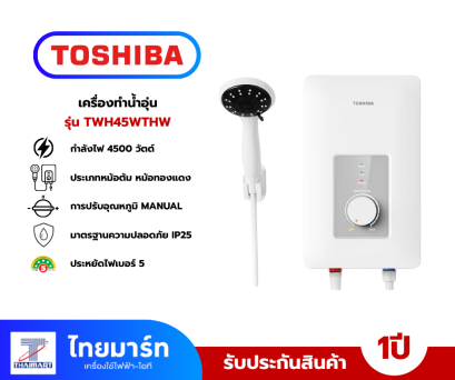 -20*8.5*40CM -1.75KG - หม้อต้มผลิตจากวัสดุทองแดงที่มีความบริสุทธิ์สูง จากทองแดงบริสุทธิ์ 99.99% ทำความร้อนได้เร็วทันใจ - ระบบตัดไฟอัตโนมัติ ELCB กรณีกระแสไฟฟ้ารั่ว เพิ่มความปลอดภัยในการใช้งาน - ระบบ SensTemp ควบคุมอุณหภูมิไม่ให้ผันผวน ไม่เกิดสภาวะน้ำ ร้อนลวก และทำอุณหภูมิให้ถึงในระดับที่ต้องการ ไม่ว่าจะกี่ฤดูก็อาบน้ำอุ่นได้อย่างสบาย ด้วยเครื่องทำน้ำอุ่น TOSHIBA รุ่น TWH-38MFNTH(W)-WB มาพร้อมเทคโนโลยี SensTemp™ หมดกังวลเรื่องน้ำร้อนลวกผิว และควบคุมอุณหภูมิน้ำร้อนอย่างต่อเนื่อง ด้วยหม้อต้มทองแดงคุณภาพสูง ทนทานต่อการกัดกร่อนและแรงดันน้ำ โดดเด่นด้วยความทนทานที่เหนือกว่า มั่นใจทุกการใช้งานกับระบบป้องกันไฟฟ้ารั่ว ELCB มาตรฐานระดับสากล พร้อมมาตรฐานป้องกันน้ำระดับ IP25 ใช้งานได้อย่างปลอดภัยและป้องกันอันตรายจากน้ำเข้าเครื่องได้อย่างมีประสิทธิภาพ