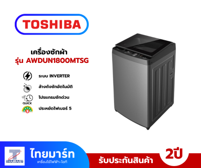 เครื่องซักผ้าฝาบน TOSHIBA รุ่น AW-DUN1800MT(SG) ความจุ 17 กก. ซักผ้าได้เยอะ เหมาะกับครอบครัวใหญ่ มาพร้อมเทคโนโลยี Ultra Fine Bubble ที่ช่วยขจัดคราบสกปรกได้อย่างล้ำลึก มีมอเตอร์อินเวอร์เตอร์แบบขับตรงที่เงียบและประหยัดพลังงาน และโปรแกรมซักผ้า 8 โปรแกรม ผสานพลังน้ำ 3 ทิศทาง พร้อมจานซักรูปแบบใหม่ ช่วยให้ผ้าสะอาดอย่างล้ำลึก