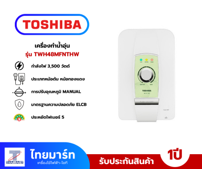 เครื่องทำน้ำอุ่นมาตรฐานจากแบรนด์ TOSHIBA ดีไซน์ทันสมัยติดตั้งเข้ากับห้องน้ำทุกสไตล์ มาพร้อมระบบความปลอดภัย ELCB ที่ตัดไฟเมื่อไฟรั่ว และระบบตรวจสอบการเชื่อมต่อสายดินอัตโนมัติ ทั้งยังมีระบบป้องกันแรงดันไฟฟ้าไม่คงที่ เเละระบบรองรับแรงดันน้ำต่ำ ช่วยให้อาบน้ำได้ต่อเนื่องและสบายใจมากขึ้น