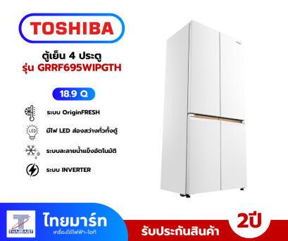 HydroFresh Fruits & Vegetables ด้วยแผ่นฟิล์มของ Toshiba ช่วยรักษาความชื้นในช่องเก็บผัก 60-min Quick Ice Making ช่องปล่อยความเย็นสำหรับเครื่องทำน้ำแข็งโดยเฉพาะ PureAIR Purification ระบบกำจัดกลิ่น Pure Air ทำงานแบบอิเล็กทรอนิกส์ซึ่งจะปล่อยประจุออกมา Food Management TSmartLife ช่วยให้คุณสามารถจัดการกับอาหาร