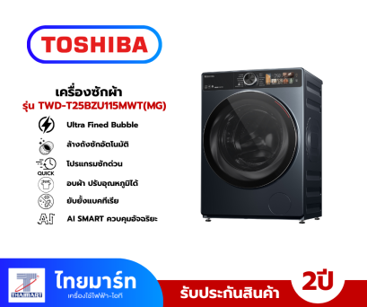 เสื้อผ้าสะอาดหมดจด พร้อมยับยั้งแบคทีเรีย ให้ผ้าสะอาดอย่างล้ำลึกด้วย Toshiba TWD-T25BZU115MWT(MG) เครื่องซักผ้า/อบผ้า ฝาหน้า ขนาด 10.5/7 กก. มาพร้อมกับ Origin Inverter ที่ช่วยประหยัดไฟ และลดเสียงรบกวนได้เป็นอย่างดี อีกทั้งยังมีแผงควบคุมแบบสัมผัสที่ให้คุณใช้งานได้อย่างง่ายดาย