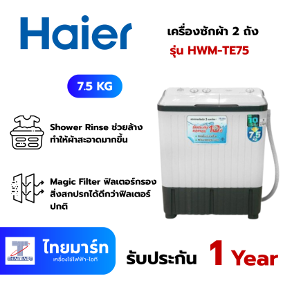 HAIER เครื่องซักผ้า 2ถัง7.5 Kg รุ่น HWM-TE75