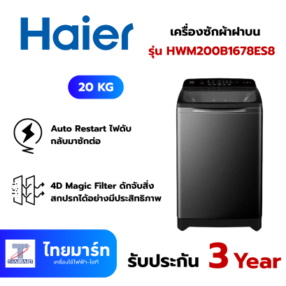 HAIER เครื่องซักผ้าฝาบน Inverter 20 kg รุ่น HWM200-B1678ES8 รอบปั่นหมาด(รอบ/นาที)700 Direct Drive Inverter Motor มอเตอร์ต่อตรง เงียบและประหยัดพลังงาน Self-Cleaning การทำความสะอาดถึงซักพลังน้ำ Rear Control Design แผงควบคุมด้านหลัง หยิบผ้าง่าย สี Graphite Silver