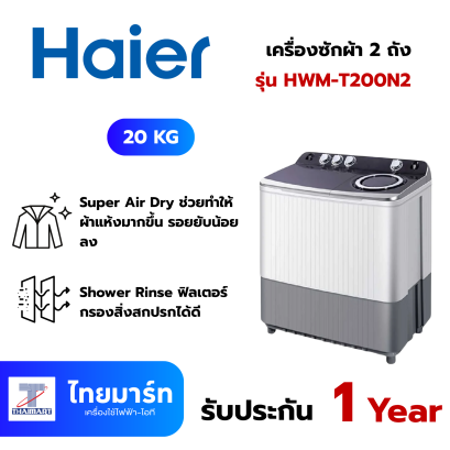 HAIER เครื่องซักผ้าฝาบน 2 ถัง 18 กก. สีขาว รุ่น HWM-T180N2 สะอาดขึ้นอีกขั้นด้วยโปรแกรม Soak Master แช่ผ้าก่อนการซักสำหรับผ้าที่มีความสกปรกมาก ดีไซน์ถังซักมีระบบม่านน้ำ Shower Rinse ในถังปั่นแห้ง ช่วยล้างทำความสะอาดได้ดี ไม่มีตก