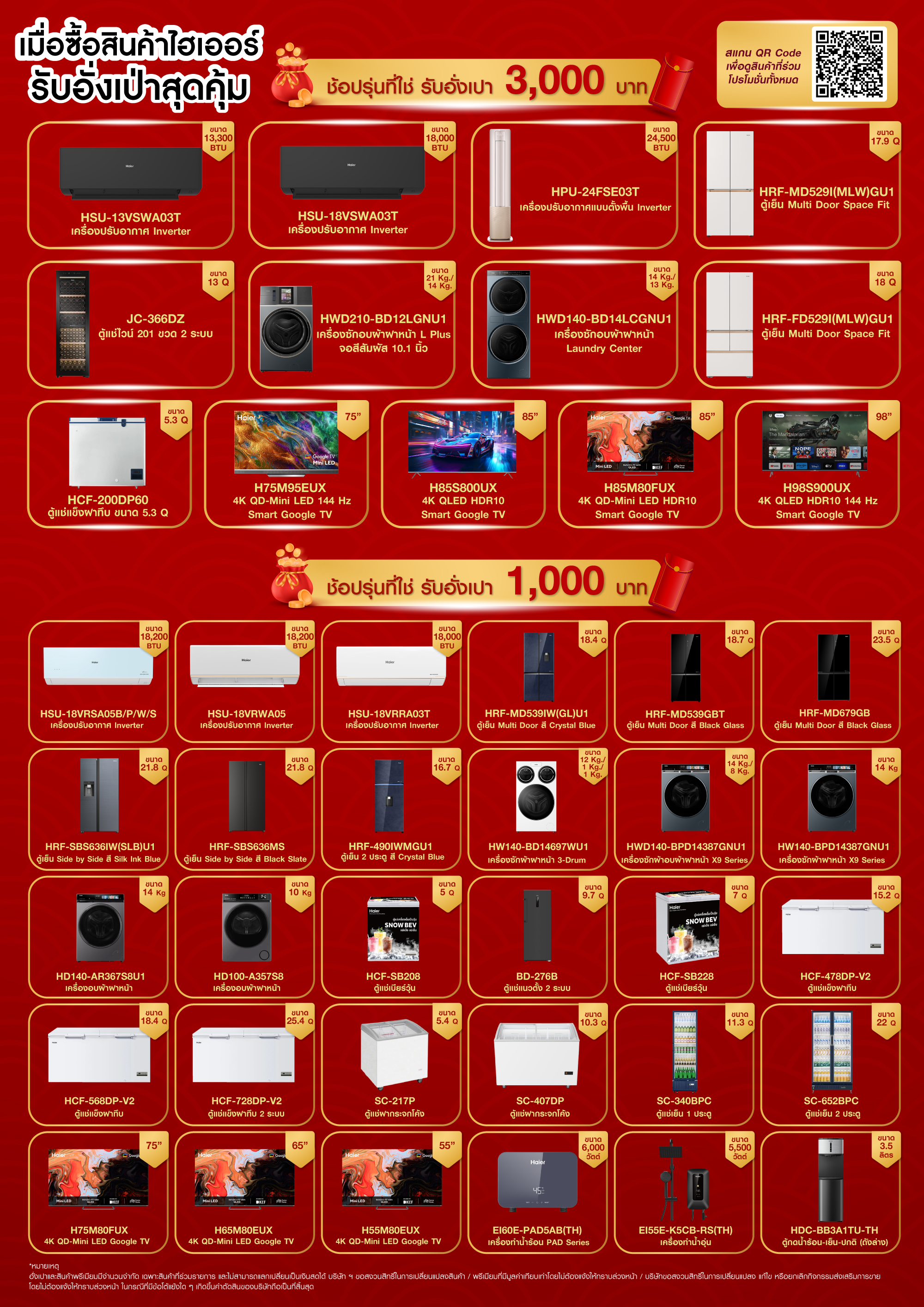 นำใบเสร็จมาลงทะเบียนที่ LINE OA @haierthailand เมนูแคมเปญ ‘อั่งเปาเฟสติวัล แจกสุขรับตรุษจีน !