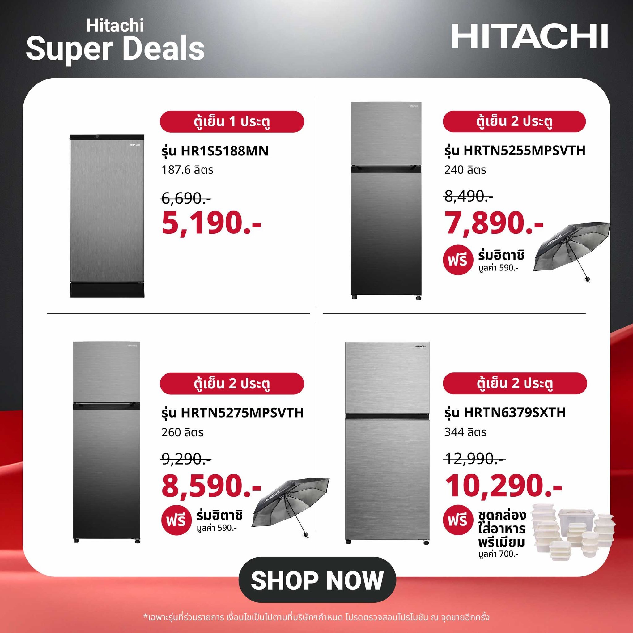 HITACHI ตู้เย็น 1 ประตู 6.6 คิว รุ่น HR1S5188MN *คละสี*
