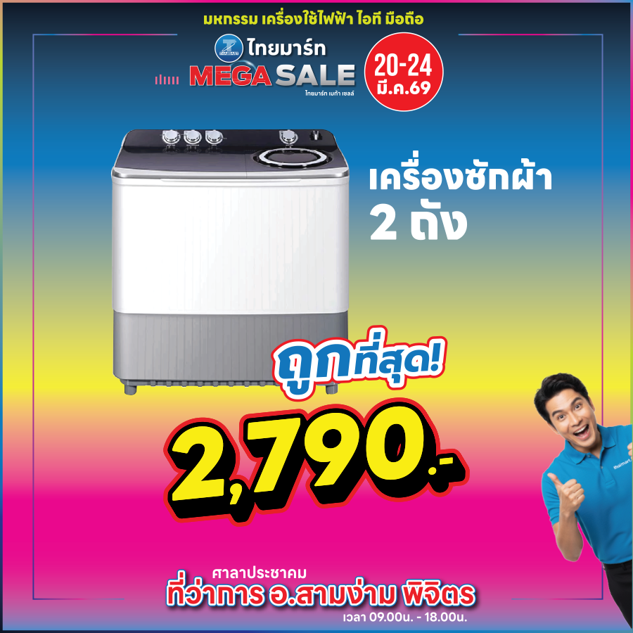 เครื่องซักผ้า 2 ถัง ขนาด 7.5 kg. ราคาเพียง 2,790 บาท