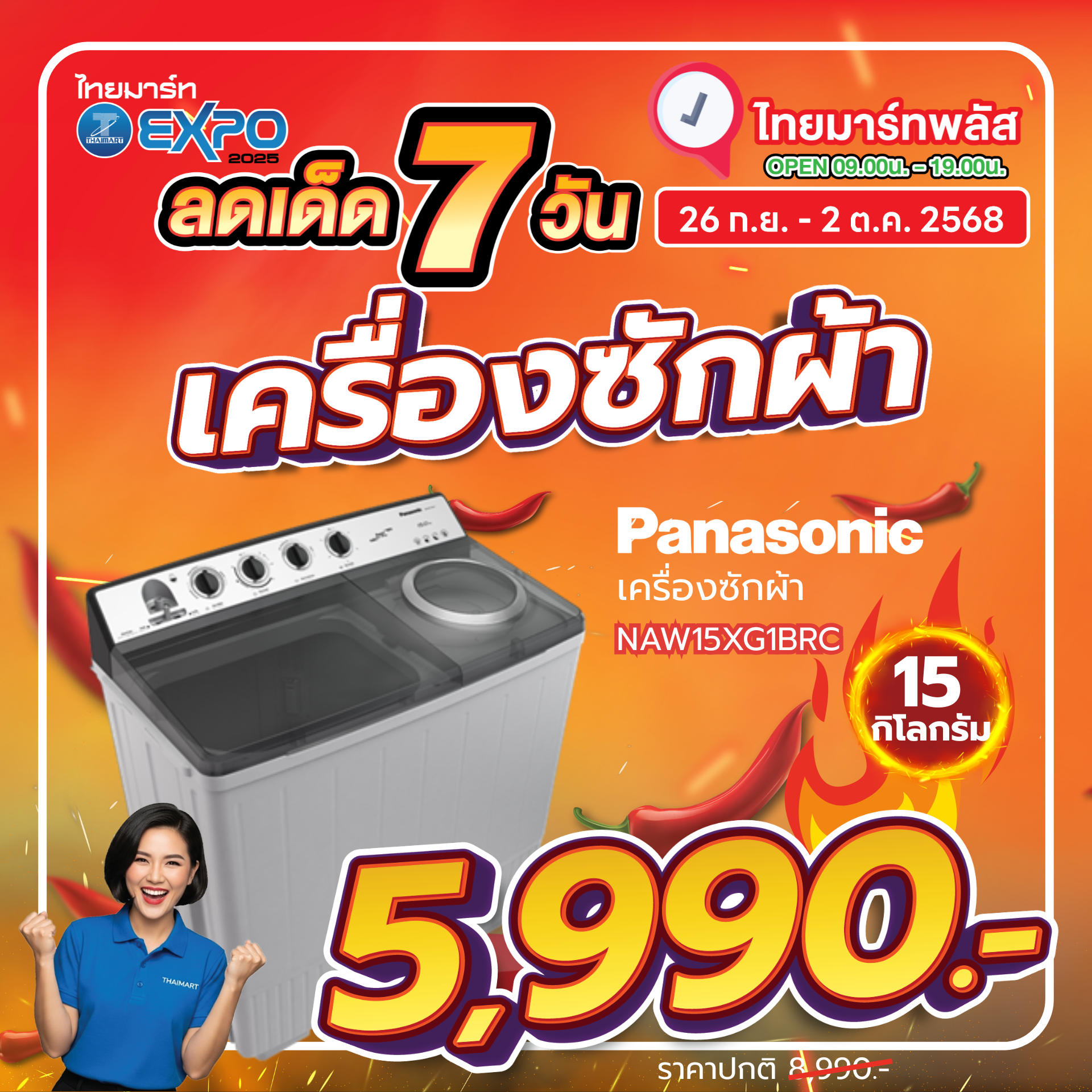 PANASONIC เครื่องซักผ้า 2 ถัง 15 กิโลกรัม รุ่น NA-W15XG1BRC