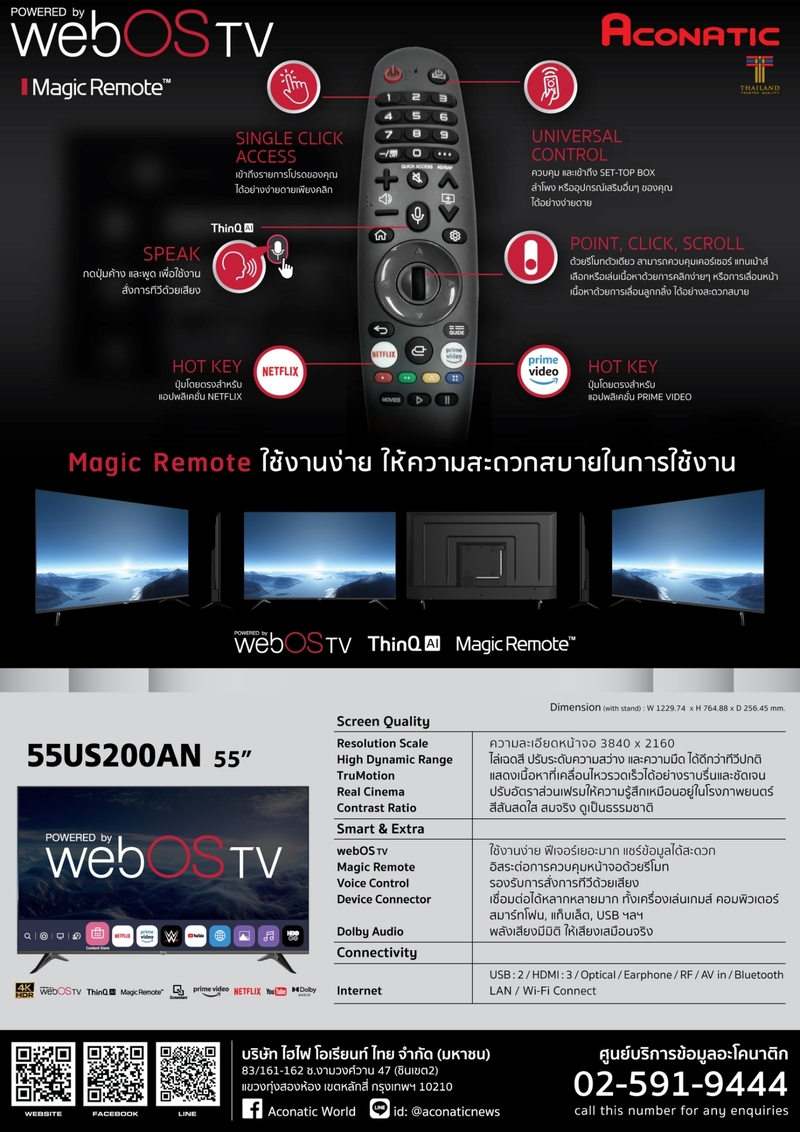 ทีวี ACONATIC LED Smart TV 4K Web OS 55 นิ้ว รุ่น AN-55US200AN