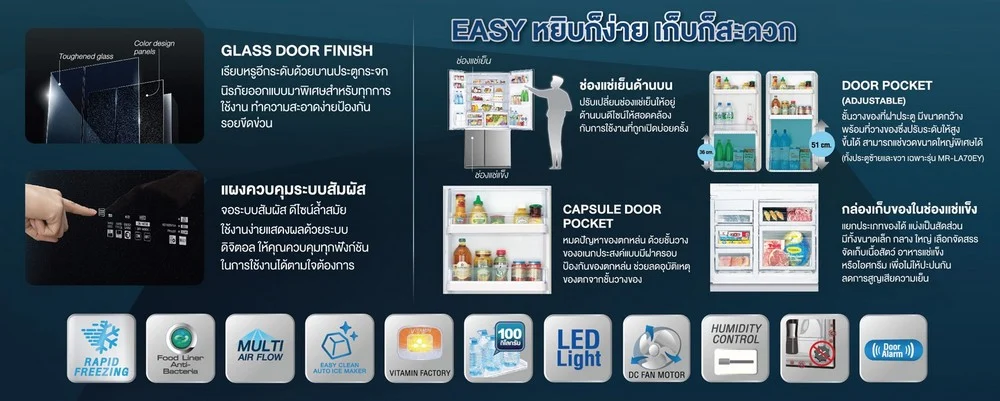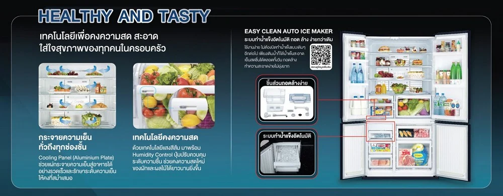 - EASY CLEAN AUTO ICE MAKER มีระบบทำน้ำแข็งอัตโนมัติ
