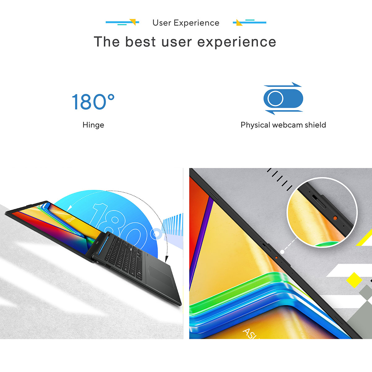 ASUS Vivobook Go 15 ได้รับการออกแบบมาเพื่อให้คุณทำงานได้อย่างมีประสิทธิภาพและอิสระ ด้วยบานพับแบบวางราบได้ 180 องศา สะดวกสบาย และด้วยนํ้าหนักที่เบาสามารถไปกับคุณได้ทุกที่ที่ต้องการ