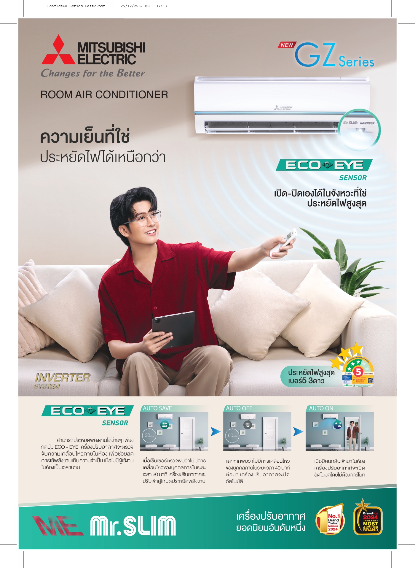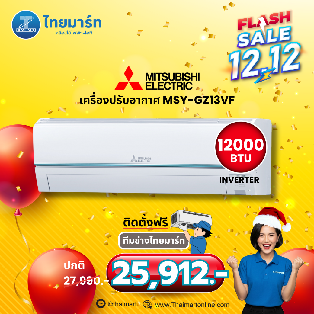 MITSUBISHI ELECTRIC GZ Series เครื่องปรับอากาศ Super Inverter 12,624 BTU รุ่น MSY-GZ13VF