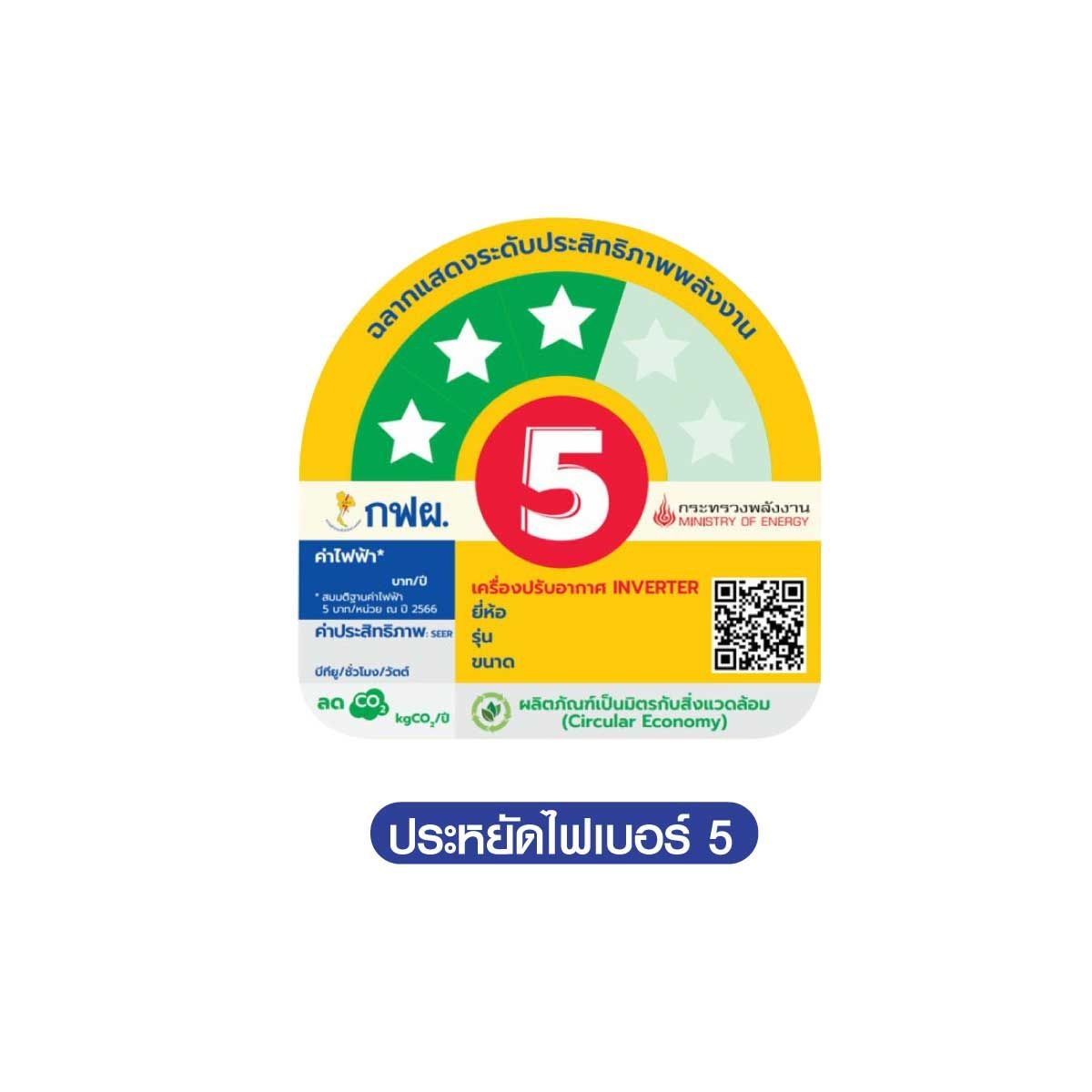 - Inverter ระบบประหยัดพลังงานสูงสุดด้วยด้วยการลดรอบของคอมเพรสเซอร์ให้อุณหภูมิเย็นสบายแม่นยำ