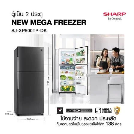 SHARP ตู้เย็น2ประตู 16.6Q Inverter รุ่น SJ-XP500TP
