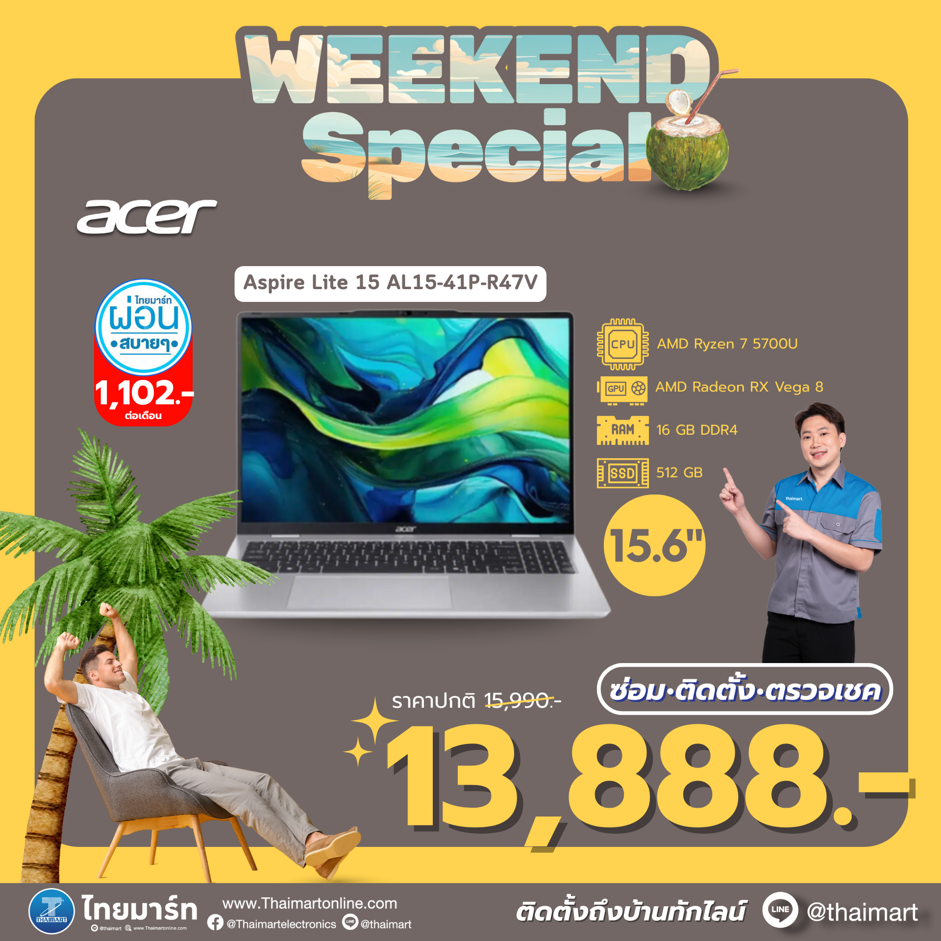 NOTEBOOK (โน้ตบุ๊ค) ACER ASPIRE LITE 15 AL15-41P-R47V (SILVER) (#NX.J53ST.001)