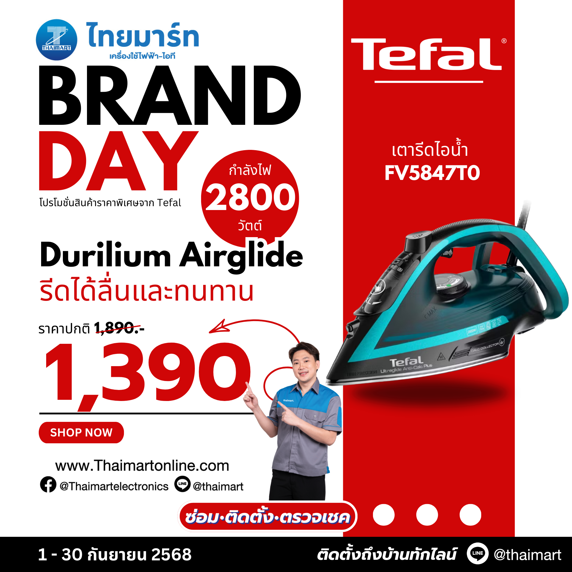 TEFAL เตารีดไอน้ำ ULTRAGLIDE PLUS 2800วัตต์ รุ่น FV5847T0 กำลังไฟ 2,800 วัตต์ หน้าเตารีด Durilium Airglide ระบบป้องกันน้ำหยด ช่วยป้องกันน้ำหยดเปื้อนลงบนผ้า ปลอดภัยด้วยระบบตัดไฟอัตโนมัติ แนวนอน 30 วินาที แนวตั้ง 8 นาที