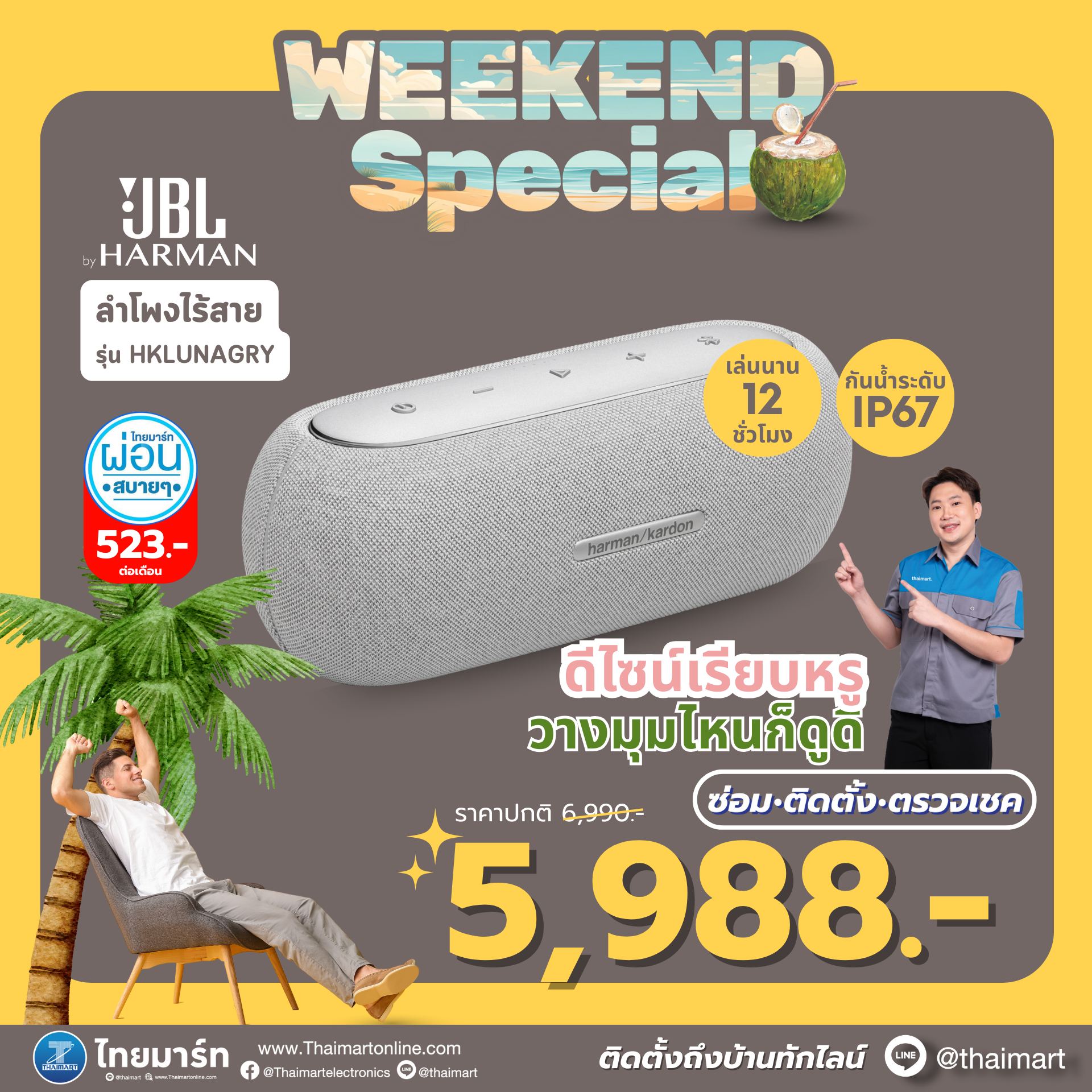 - รองรับการใช้งานจับคู่แบบ Stereo ลำโพงคู่