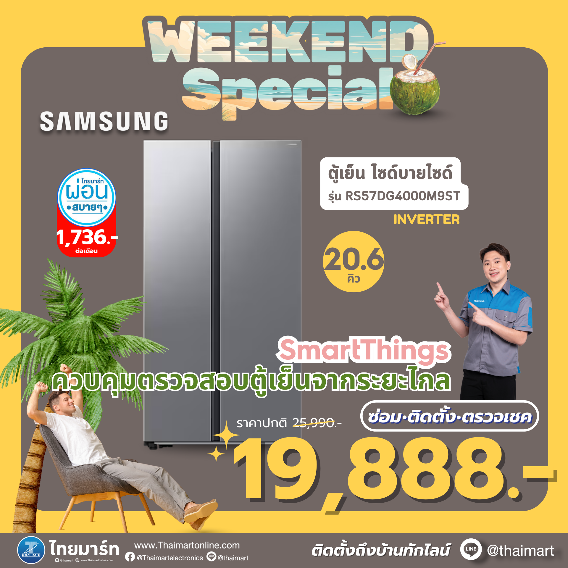 SAMSUNG ตู้เย็น Side by Side 20.6Q สีเงิน รุ่น RS57DG4000M9ST ระบบทำความเย็น Digital Inverter Compressor ระบบกระจายความเย็น All-aroundCooling ระบบละลายน้ำแข็ง No Frost เชื่อมต่อสมาร์ทโฟนได้ มอก.2214-2561,2186-2561