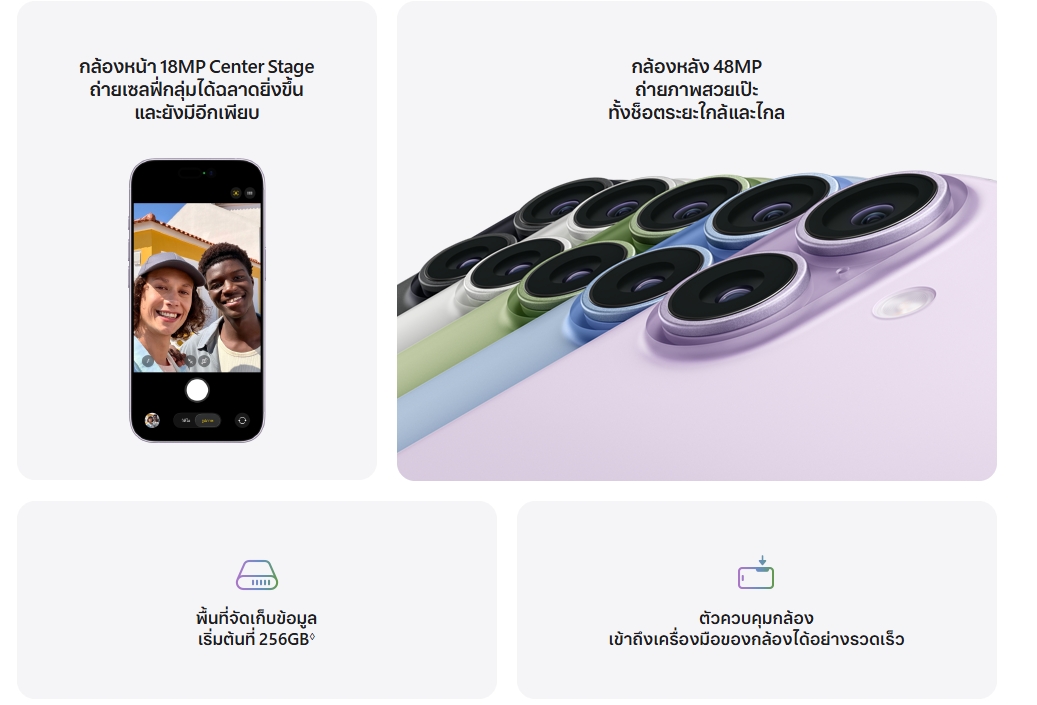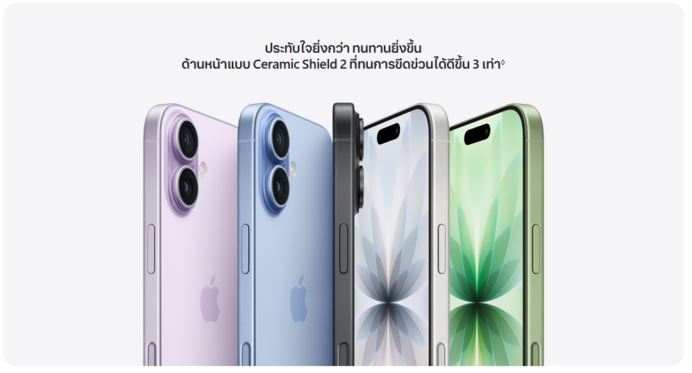iPhone 17 ประทับใจยิ่งกว่า ทนทานยิ่งขึ้น ด้วยจอภาพ ProMotion ขนาด 6.3 นิ้ว Ceramic Shield กล้องหลัง 48MP ทั้งหมด กล้องหน้า Center Stage ชิป A19 และอีกมากมาย iPhone 17 มาใน 5 สีสันสุดสวยและด้านหน้าแบบ Ceramic Shield 2 ที่ทนการขีดข่วนได้ดีขึ้น 3 เท่า