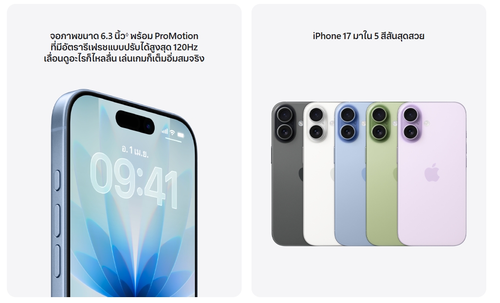 โดยในรุ่น iPhone 17 มีด้วยกัน 5 สี ดังนี้