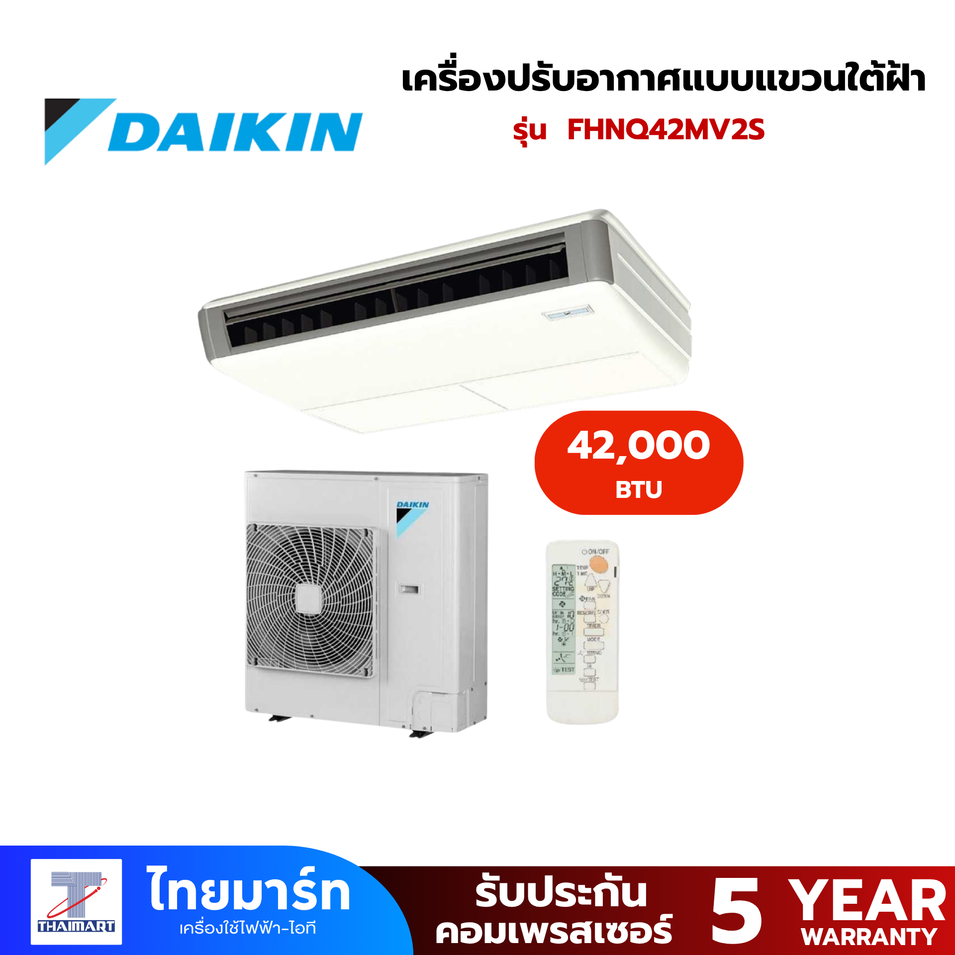 DAIKIN เครื่องปรับอากาศแบบแขวนใต้ฝ้า Non Inverter รุ่น FHNQ42MV2S ขนาด 42,000 บีทียู (R410A) รีโมทแบบไร้สาย