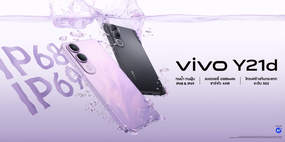 vivo Y21d ที่มากับดีไซน์เหนือกาลเวลาด้วยรายละเอียดที่ประณีต ตัวเครื่องเพรียวบาง จับสบายมือ บางเฉียบเพียง 8.39 มม. สุขภาพแบตเตอรี่ 5 ปี เพื่อการใช้งานที่ยาวนานกว่า การกันน้ำระดับสูง + การกันฝุ่นระดับสูงสุด