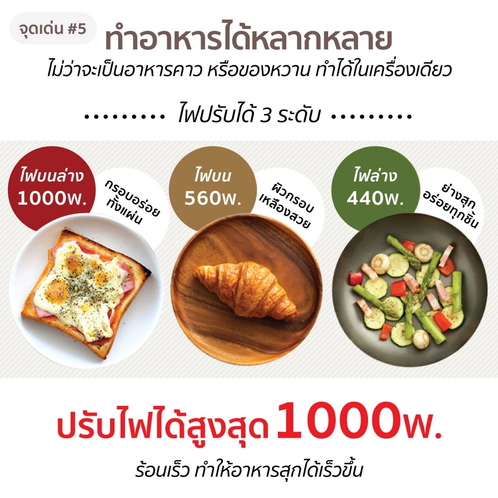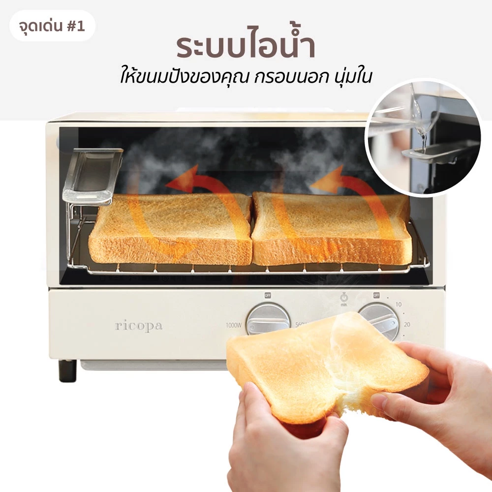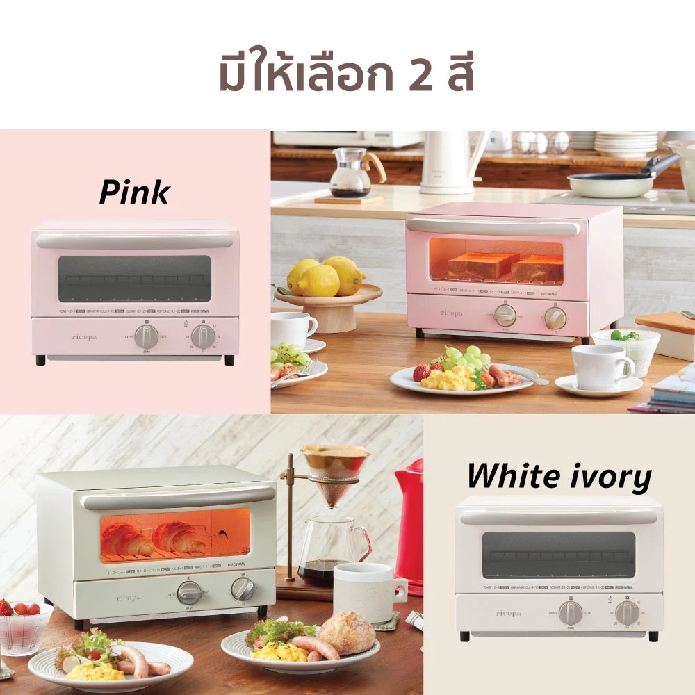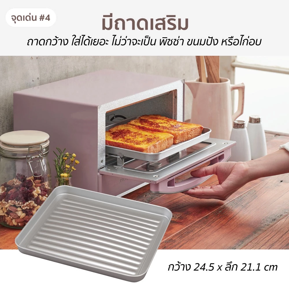 เครื่องปิ้งขนมปัง ดีไซน์สีพาสเทลสุดน่ารัก จุได้มากถึง 11ลิตร ฟังก์ชั่นการใช้งานเรียบง่าย(ปุ่มหมุน) ใครๆก็ใช้งานได้ ทนทาน ปรับไฟบน-ล่างได้ ปรับอุณหภูมิได้ถึงสูงสุด 1000W ตั้งเวลาได้ถึง 60 นาที ถาดรองเศษขนมปังแบบสไลด์ด้านล่าง สามารถดึงออกและทำความสะอาดได้ง่าย สี : ชมพู/ครีม