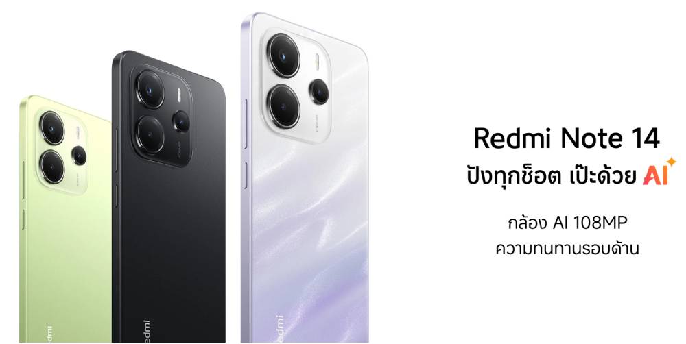 Xiaomi Redmi Note 14 สมาร์ทโฟนที่มาพร้อมกล้อง108MP ให้ภาพคมชัดทุกมุมมอง และระบบ OIS ที่เก็บทุกช็อตให้นิ่งสวย แม้ในสถานการณ์ที่ท้าทาย ดีไซน์สุดแกร่งพร้อมความทนทาน ตอบโจทย์ทุกการใช้งาน ไม่ว่าจะถ่ายภาพ เล่นเกม หรือใช้ในชีวิตประจำวัน นี่แหละสมาร์ทโฟนที่คุณห้ามพลาด