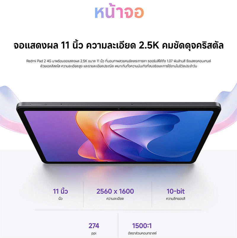 Xiaomi Redmi Pad 2 LTE    แท็บเล็ตที่มอบประสบการณ์ที่ครบครันในราคาที่เข้าถึงได้ง่าย ด้วยการผสมผสานระหว่างหน้าจอคุณภาพสูง ระบบเสียงที่ยอดเยี่ยม ประสิทธิภาพที่ลื่นไหลสำหรับการใช้งานทั่วไป แบตเตอรี่ที่อึดทน ดีไซน์ที่สวยงาม และการเชื่อมต่อ LTE ที่ทำให้คุณใช้งานได้อย่างไร้ขีดจำกัด ไม่ว่าจะอยู่ที่ไหน จึงเป็นตัวเลือกที่คุ้มค่าสุดๆ ซื้อสินค้าได้ที่ BaNANA ส่งเร็วทันใจ