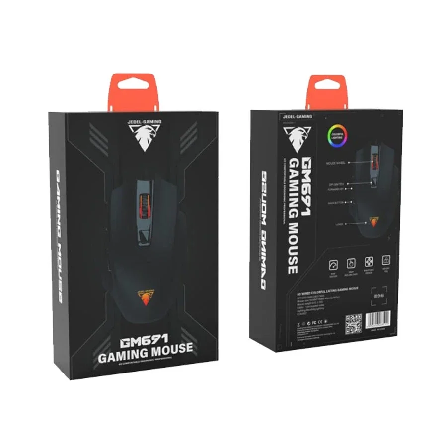 เมาส์เกมมิ่งส์ Jedel GM691 RGB Gaming Mouse Optical Sensor 3600 DPI - 6 Buttons Braided cable รับประกันสินค้า 6 เดือน