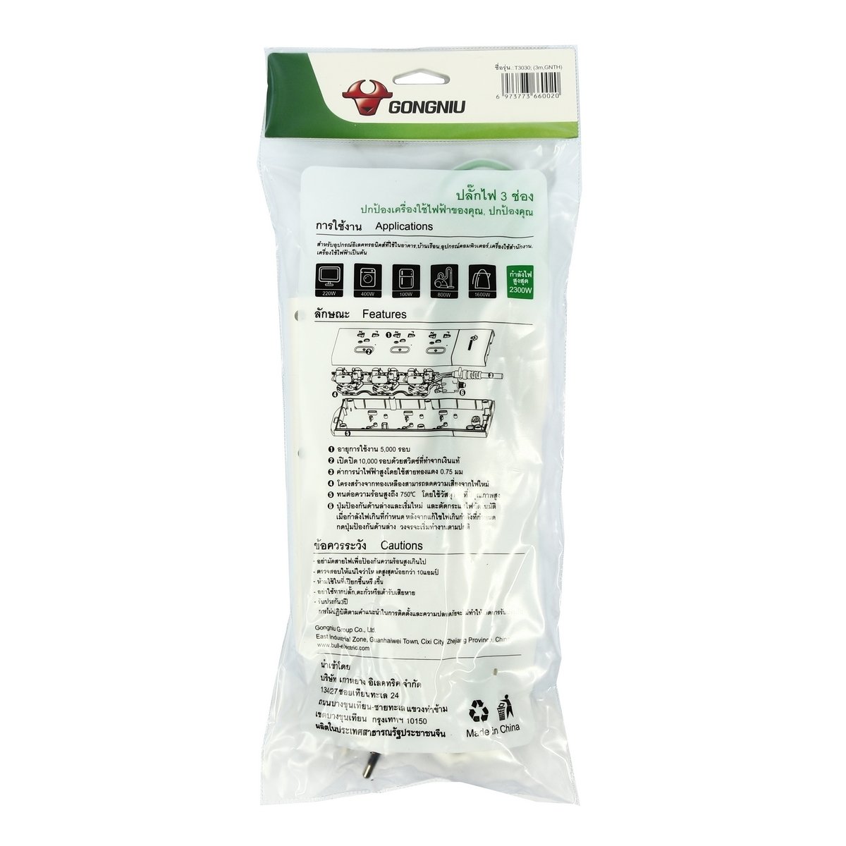 ปลั๊กสายไฟ 3 สวิตซ์ปิด/เปิด 3ช่อง (GONGNIU) T3030 3M