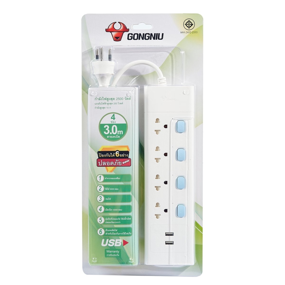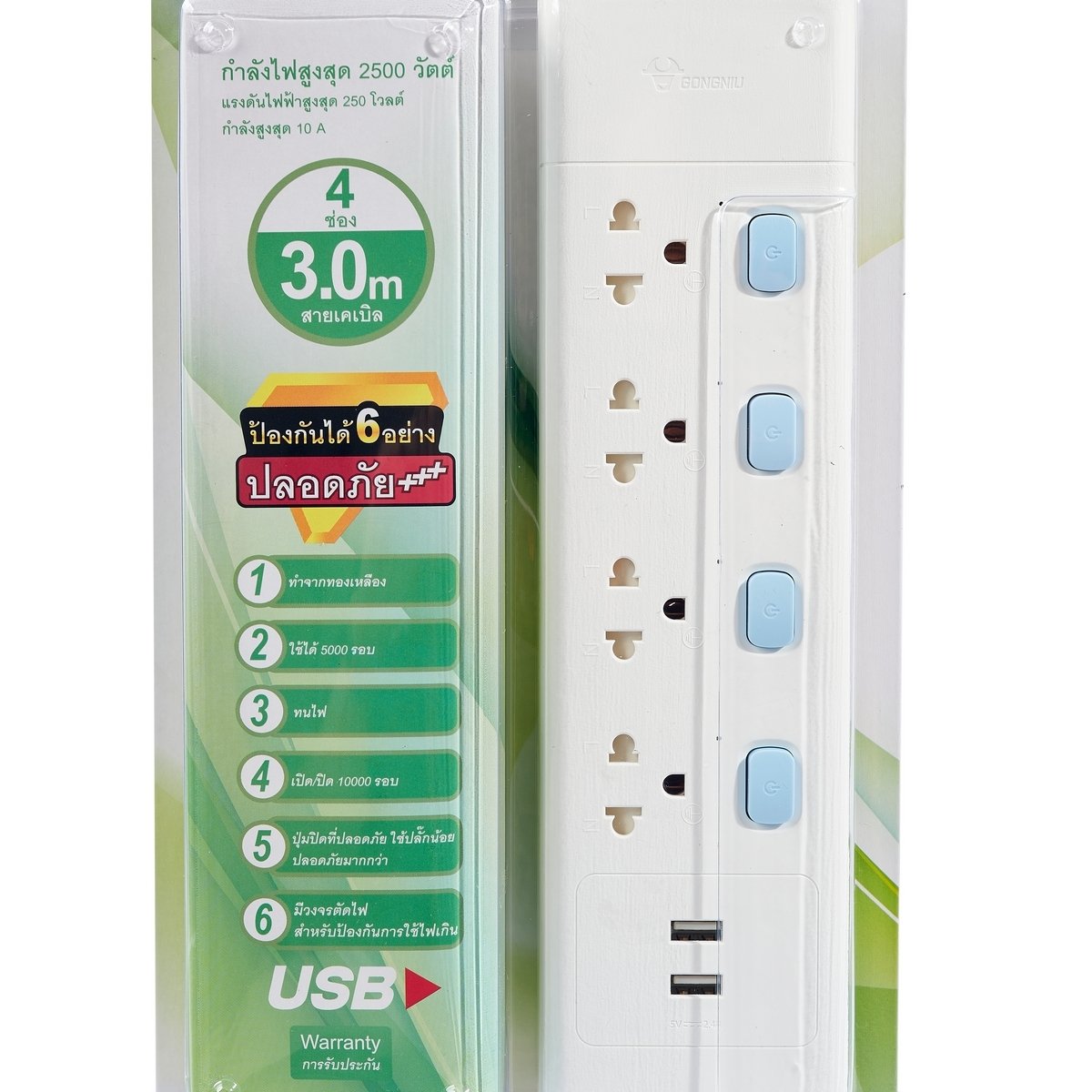 ปลั๊กสายไฟ 4 สวิตซ์ปิด/เปิด 4 ช่อง +USB T304U-3M