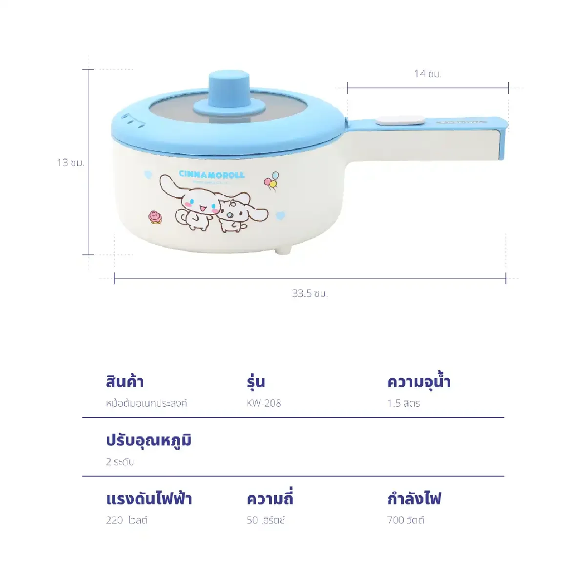หม้อต้มไฟฟ้า อเนกประสงค์ Cinnamoroll | รุ่น KW-208
